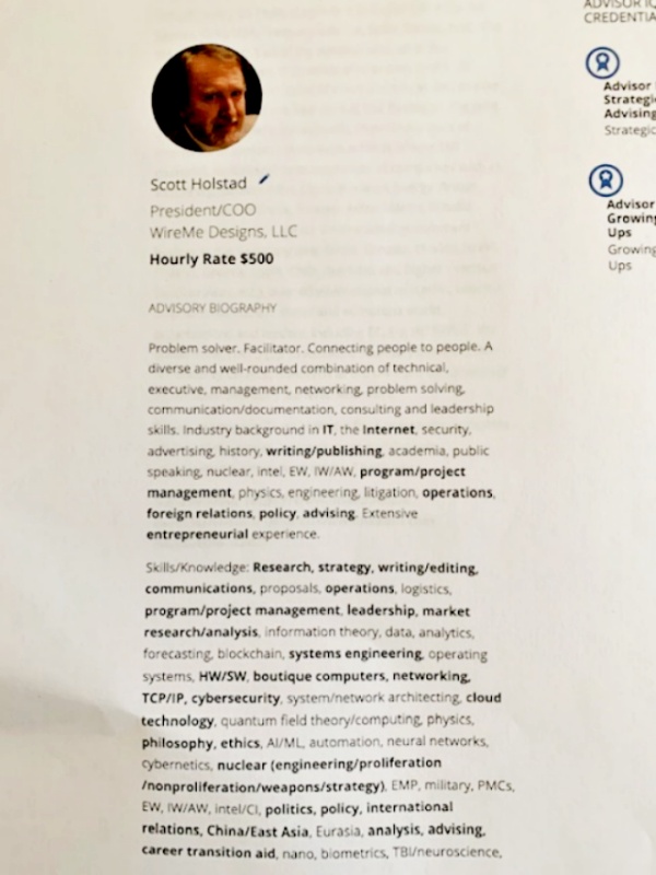 There are a few others not mentioned on my blog Page, and obviously I am missing member ID cards or certificates from quite a few that are listed. One reason, though, is that a number of these organizations, some of which I’ve been a member of for decades such as Usenix, no longer produce member ID cards, although I have many of my old ones from previous decades and I have Usenix member ID cards for myself for the last four years before the turn of the century! So I’m about to finish this idiotic post that no one will read or care about, but I’ve had fun putting it together, by posting a few screenshots while leaving many more unposted from my very large profile on a site that used to be called ExecuRanks, but which changed its name to AdvisoryCloud a couple of years ago. I was invited to become a member and while there is an annual charge for most people, I was not required to pay it. Since I was in the process of doing some consulting and had been thinking about getting a seat on an advisory board again somewhere, I decided to join (because I have actually declined invitations, although it probably seems hard to believe), put together a profile, have a public listing and see if anything would happen. Unfortunately, almost immediately after, my poor health took a serious nosedive, getting progressively worse ever since, and I’ve been forced to turn down numerous opportunities, some of which would have been great, such as being asked to join the advisory board of an Australian cryptocurrency startup, collaborate on a technical security paper with a Ukrainian security expert for a large circulation European security publication, engage in research, experiments, publication of findings with a US nuclear entity doing some cutting edge research and work, help a university “rebrand” itself and much more, as well as sadly having to cancel or turn down an unreal number of speaking engagements, ranging from everything from being a featured speaker at a major university’s graduate MBA program in which I was asked to give a presentation on entrepreneurship to speaking at a well known annual security conference on cloud technology security to a UN NGO on the topic of successfully accomplishing one of the UN’s official SDGs before 2030 to being asked to speak on sustainability at a well known annual international science conference in Paris and more. Serious disappointment! I’ve also had to cancel trips to various conferences and conventions around the country, in places like Atlanta, Huntsville, Washington DC, Baltimore, Charleston SC and Los Vegas, among others. And finally, I’ve had to consistently turned down repeated requests to provide me with VIP passes to serve as a visible SME at conferences and conventions throughout the country, ranging from Atlanta to Nashville to Knoxville to Washington DC to New York City to Baltimore to Las Vegas to Los Angeles, as well as repeated invitations to be a guest at conferences located elsewhere, such as England, Poland, Switzerland, Australia, South Korea and more. Most of these would have involved compensation plus expenses. Bitterly disappointing, I have to say. Finally, a couple of somewhat humorous and somewhat odd situations. Two organizations have tried fairly hard to recruit me with my either refusing or not agreeing to commit for an indefinite period of time. One is the Freemasons, where over a period of several years, I was approached by three members of various ranks, all of whom attempted to persuade me, and the second was especially odd. Most of us have heard of, if not being pretty familiar with the historic Knights Templar, and while history tells us the group was outlawed with its members hunted down, and tortured and killed by the Inquisition even though these Christian knights had dedicated their lives to guarding pilgrims on their way from Europe to the Holy Lands, as well as having to fight numerous, gruesome battles with a variety of Muslim groups surrounding the area. There are confirmed, documented historical reasons why they were banned, but I won’t go into that here. Suffice it to say that many people believe them to be a part of the past while many believe a good deal of them survived and fled to other countries, especially Finland, England and Scottland, and depending on which conspiracy theory you read, either have survived under the radar all these centuries while wielding tremendous influence behind the scenes (as well as the belief they still hold a huge fortune, as well as the Holy Grail and the Ark, etc…, the second two being solely rumor) to their descendants being one or both the Freemasons (and there is a lot of evidence to support that theory) to the Illuminati, where this is not nearly as much evidence, aside from the fact that many members of that group were also Freemasons, which was allegedly linked to the Templars, so there you are! And while the Freemasons have survived and thrived all these centuries (our first president was one, as were many of the other Founding Fathers), the Bavarian Illuminati was banned 10 years after it was formed and its members were hunted down throughout Germany, so naturally conspiracy theorists believe a number of them escaped, fled elsewhere, with a certain number eventually making their way to America. Where they united with former German colleagues to form the Skull & Bones fraternity at Yale, which is a whole different story and conspiracy theory that is huge enough to fill many books and which I won’t get into. The point is this: there is little tangible evidence to conclude or confirm the Templars A) remain in existence while under the radar for centuries or B) ever made it to the US. Nonetheless, there has been such historical international obsession with the order, that for centuries, publications have appeared about them, books have been written, and even movies made (The DaVinci Code with Tom Hanks is one of them) because a whole lot of people believe