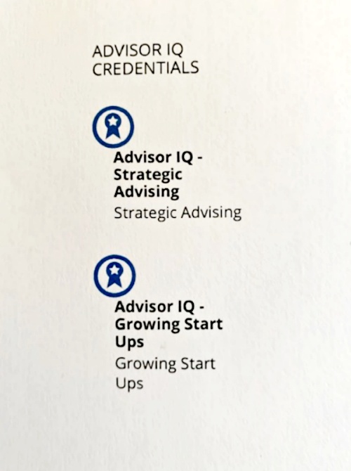 A couple of examples of some credentials from my AdvisoryCloud Profile