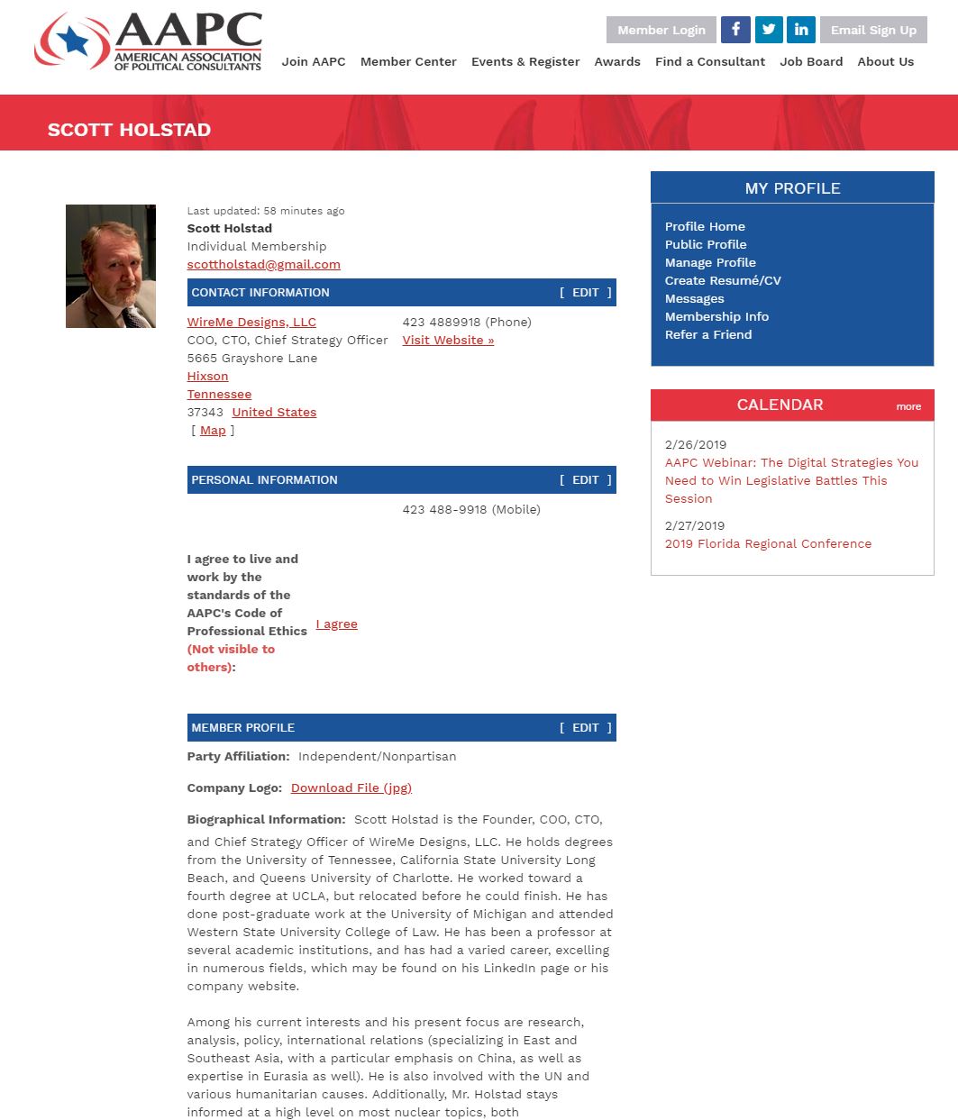 American Association of Political Consultants (AAPC) – the top half of my web directory profile page