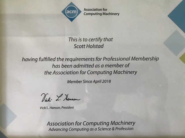 Association for Computing Machinery (ACM) Professional Member Certificate