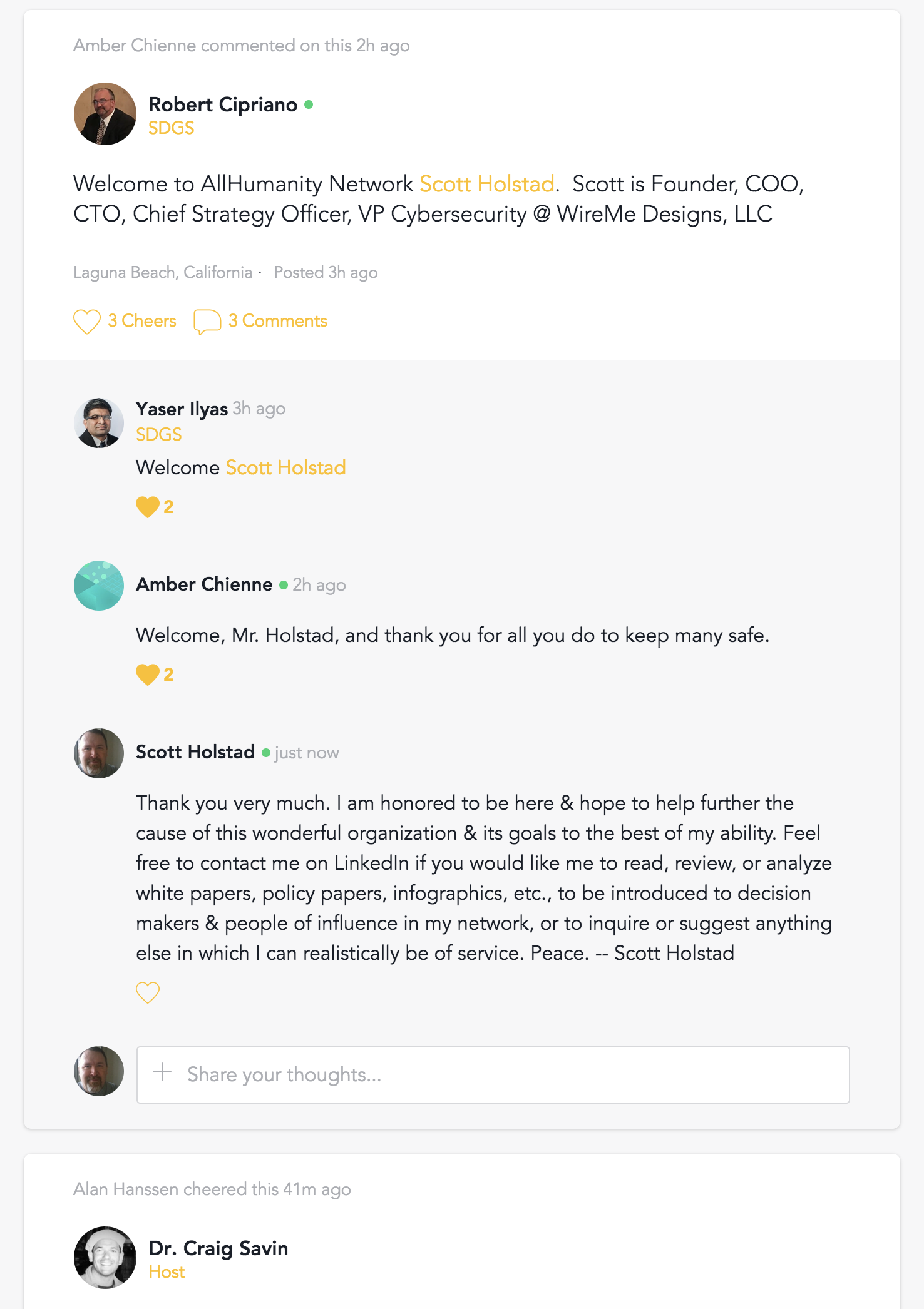 A screenshot from The AllHumanity Group‘s Network website in which I was welcomed to the group some years ago