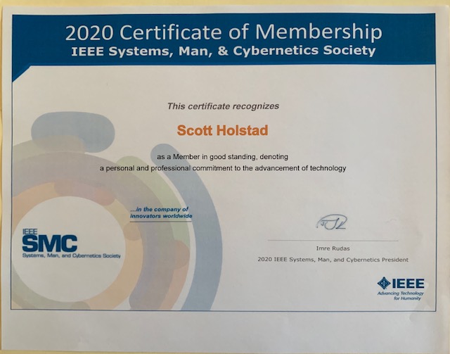 Systems, Man, & Cybernetics Society (SMC) Member Certificate