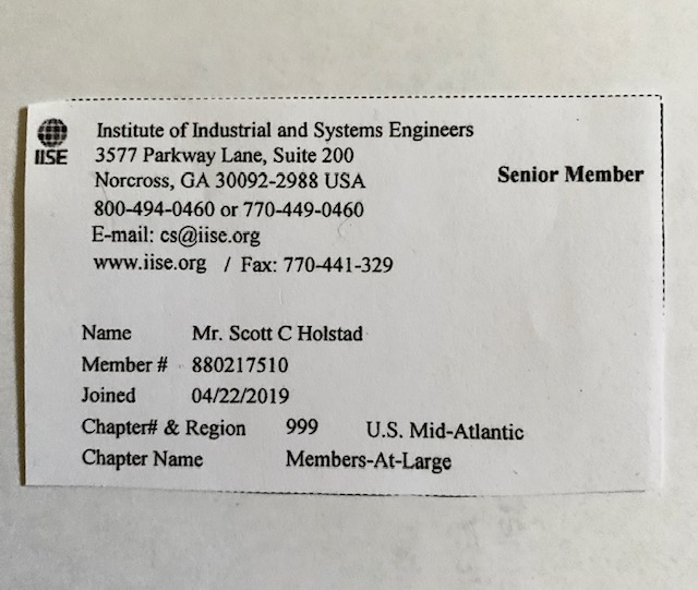 Institute of Industrial & Systems Engineers (IISE) Senior Member ID Card