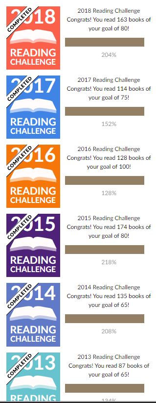 My Goodreads All-time Annual Reading Challenge Results