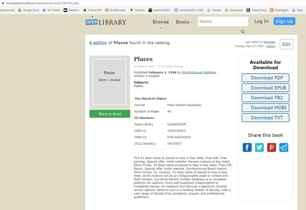 How about some screenshots of pirate sites of groups ripping me off, making some of these books available illegally with me naturally not getting a dime, nor having even known of it until I started looking last summer. Nice gig if you can get it, I suppose…