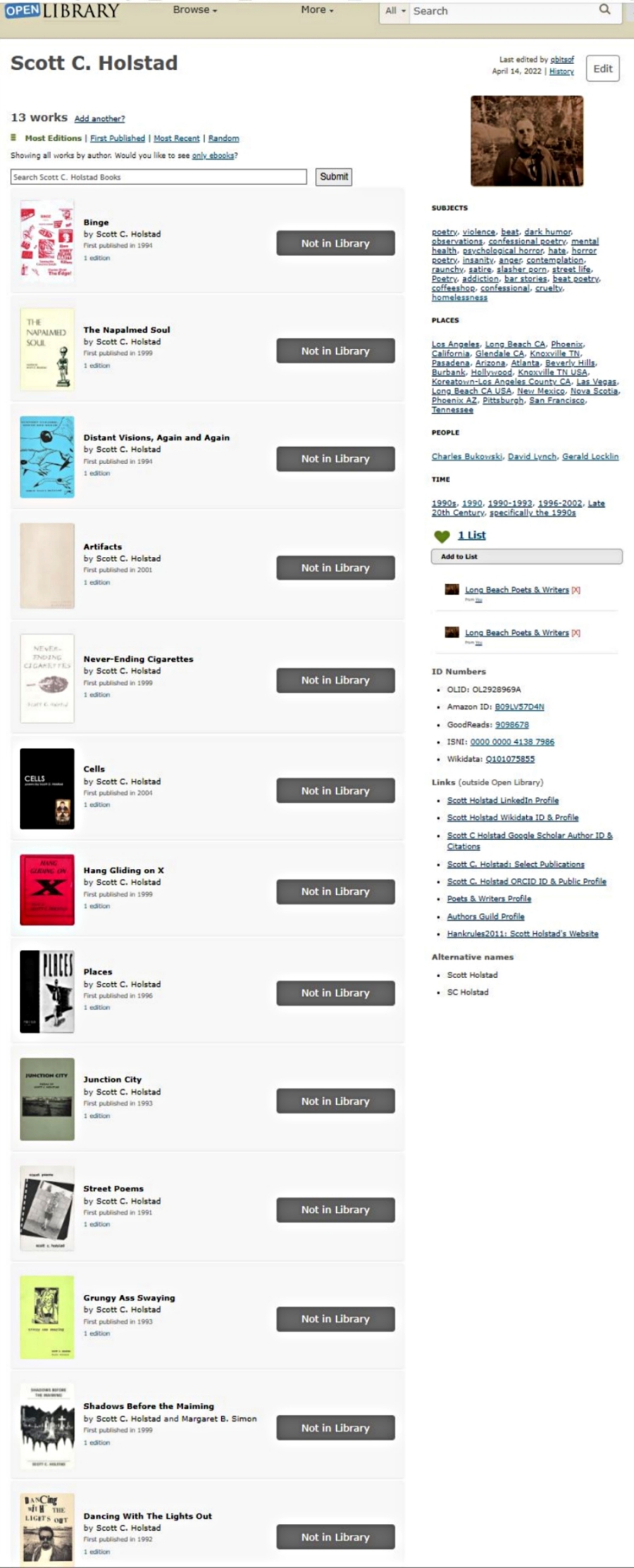 - Scott C. Holstad is ranked #1 as the Most Prolific Author on the Subject of Beat. (Bizarrely Jack Kerouac is #2 behind me.)