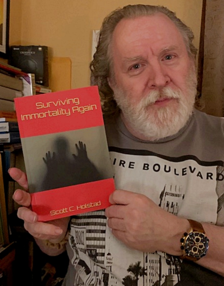 I’m still recovering from several recent surgeries and in fact, things have been going poorly, are very challenging. Complications from one emergency surgery may be leading places I don’t want to go but have little choice. I haven’t been able to write, post, email, do much of anything and that can be difficult so I thought I’d try to post a few newish pics of me, us, our cat, a few books, etc., to share our putting our best face forward with you and remind ourselves in the process that there’s still much to be thankful for, despite this being the national and global year from hell in almost every other way. Hah! So, a few pics. Cheers! — Scott