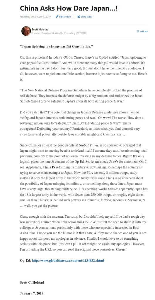 I have and do write many things on many different topics on many platforms and forums. Over the past several years, I’ve written, posted and published hundreds of pieces on LinkedIn, Medium, Twitter, blogs and elsewhere, virtually none involving creative writing. Much of it has been along the lines of policy analysis, geopolitical analysis, national security, China and the Indo-Pacific region, quantum physics, nuclear proliferation, privacy issues, issues regarding the pandemic and future contingencies and much more. Here is a small slide show of some of the topics I did generally between 2017 – 2019. Added here just for the heck of it…