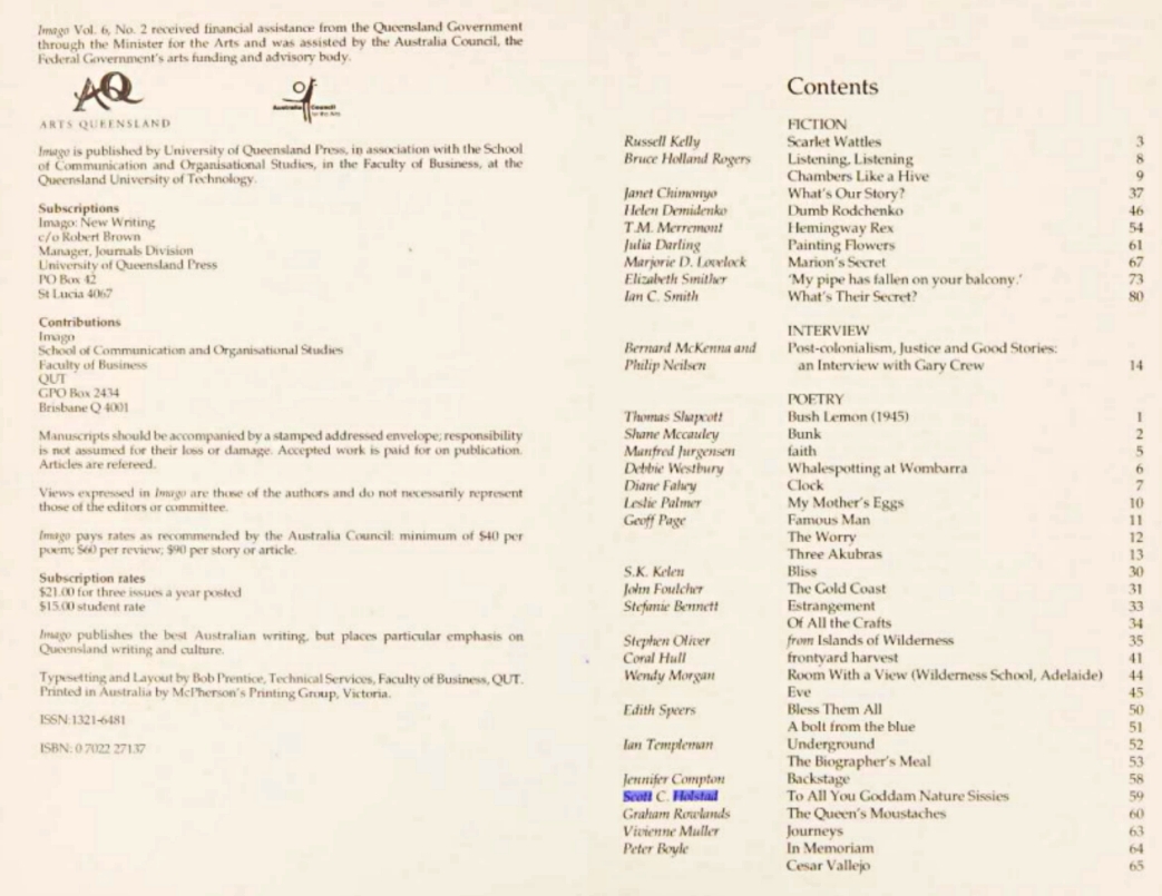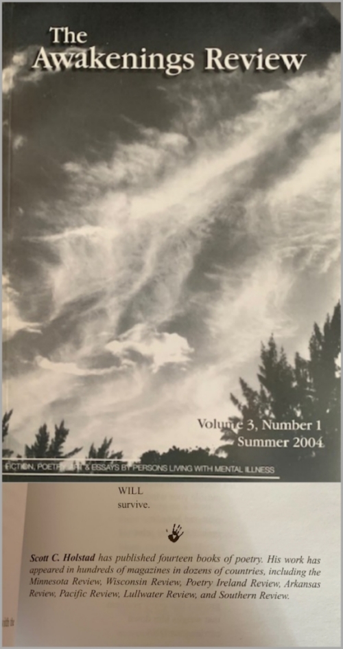 The Wisconsin Review was not the first literary journal (Mainstream University Literary Publication), but it WAS one of my first such journals to have a larger press run & was a bit more well known than some others that had published me (all of whom I was grateful for & to). While it wasn’t going to be the most “prestigious” journal in which my work appeared, it was a nice way to break into the next level. In retrospect, it didn’t hurt my ego that the poems published here were pretty damn good & in fact, so much so that two other journals got into scuffles with the Wisconsin Review editors over one or both of these poems & one of those journals’ reputation was close to the very highest levels to which one could aspire — largely a household name for anyone in literature. At the time, however, it was immensely awkward for me & I wanted to hide under a rock.