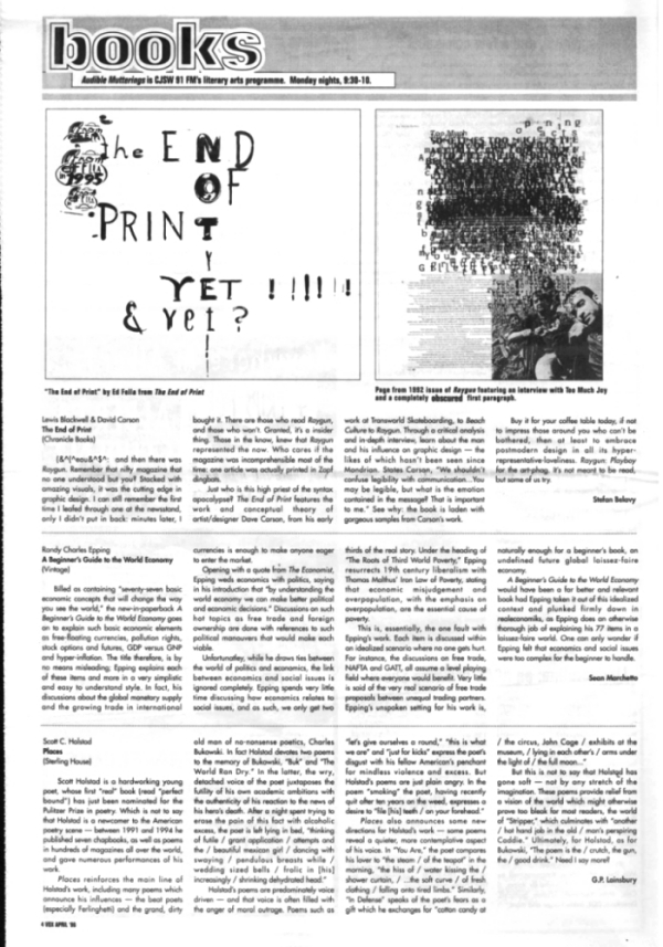 The first country to publish me outside of the US was Finland & that nation became my biggest supporter over the longest period of time. My second book, Industrial Madness, was published in Helsinki in 1991. This collage shows a short intro to/of me in Rendezvous’ssa, one of the many mags that grew to like me there. The editor alludes to & eventually did publish a second printing of the 1991 book. I recently translated this into English, seen here in the side-by-side collage.