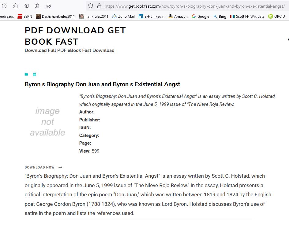 So Bing does a service and disservice and one other example shows how it does a current disservice. Typically most search engines offer a list of “related” searches at the bottom of their webpages, which one might think is good. These are usually based on the number and frequency of related searches of that particular topic, in this case “Scott C Holstad Author.” Some might include variations such as “Scott Holstad,” “Scott C Holstad Poet,” “Scott C Holstad Writer” etc. In Bing’s case though, in addition to those, others include “Scott C Holstad free downloads,” which is quite worrisome and frustrating because there ARE NO legal downloads, free or not, authorized by anyone to have, obtain or gain access to, and thus these are either “pirates” or entities likely guilty of copyright infringement, intellectual property theft or more. If that sounds unbelievable, there are a couple of screenshots already on this webpage in the pics above with illicit listings for some of my stuff and I have tons of screenshots of all types of piracy, theft, misuse, illegal use or sales of many of my books and even research papers and essays for sale, etc., which boggles my mind, but isn’t entirely new. What’s new is seeing a link to such sites openly available via major search engines.