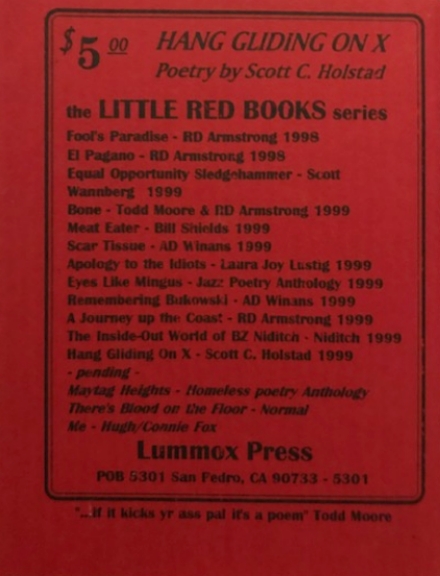 Holstad’s first book, Street Poems (mulberry press), is listed.