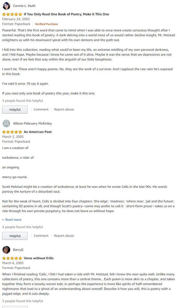 Want to see some crazy prices for some of my books, mostly used? And even those that are listed as New still border on crazy. Recall that what I’m about to post are listings for some of my books dating generally from 1995 – 2004. The average has tended to be 1999. (I’m not going to come close to posting all of the listings I’ve collected over the years!) I will likely post a few ads, listings and prices from between 2011 – 2022, so these will be between 7 – 32 years old, as in older than when these were originally published and going against the original retail price, which I believe for all but one (CELLS), was $10 and below, often between $6-$8. I used to get bent out of shape that everyone except me seemed to be profited from MY work, but I lost that battle long ago so now just watch with resignation. Writing poetry doesn’t pay rent. Re-selling it just might. Clearly I went into the wrong line of work. Hahahaha!