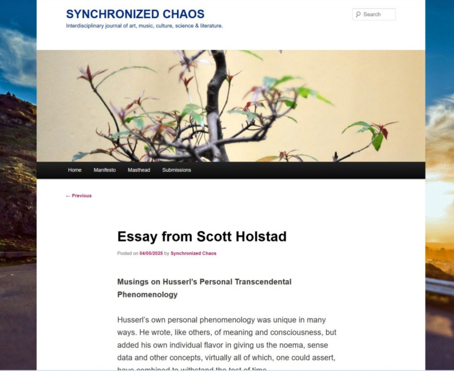 My “Musings on Husserl’s Personal Transcendental Phenomenology” Published in SYNCHRONIZED CHAOS Magazine!